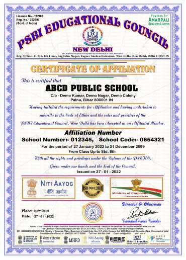 आपके School के Branding और Basic Documentation के लिए Affiliation Certificate, जो आपके स्कूल को विश्वसनीयता प्रदान करता है